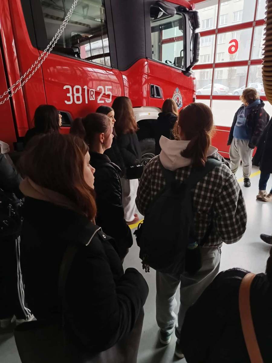 Jak zawsze  ciepło przyjęci przez gospodarzy poznali specyfikę zawodu strażaka. Podczas wizyty w KMPSP nasi uczniowie dowiedzieli się tego, jak przebiegają kolejne etapy rekrutacji, jakimi czynnościami wypełniony jest każdy dzień służbowego grafiku,  co dzieje się na komendzie po odebraniu zgłoszenia, gdy oddział spieszy z pomocą.