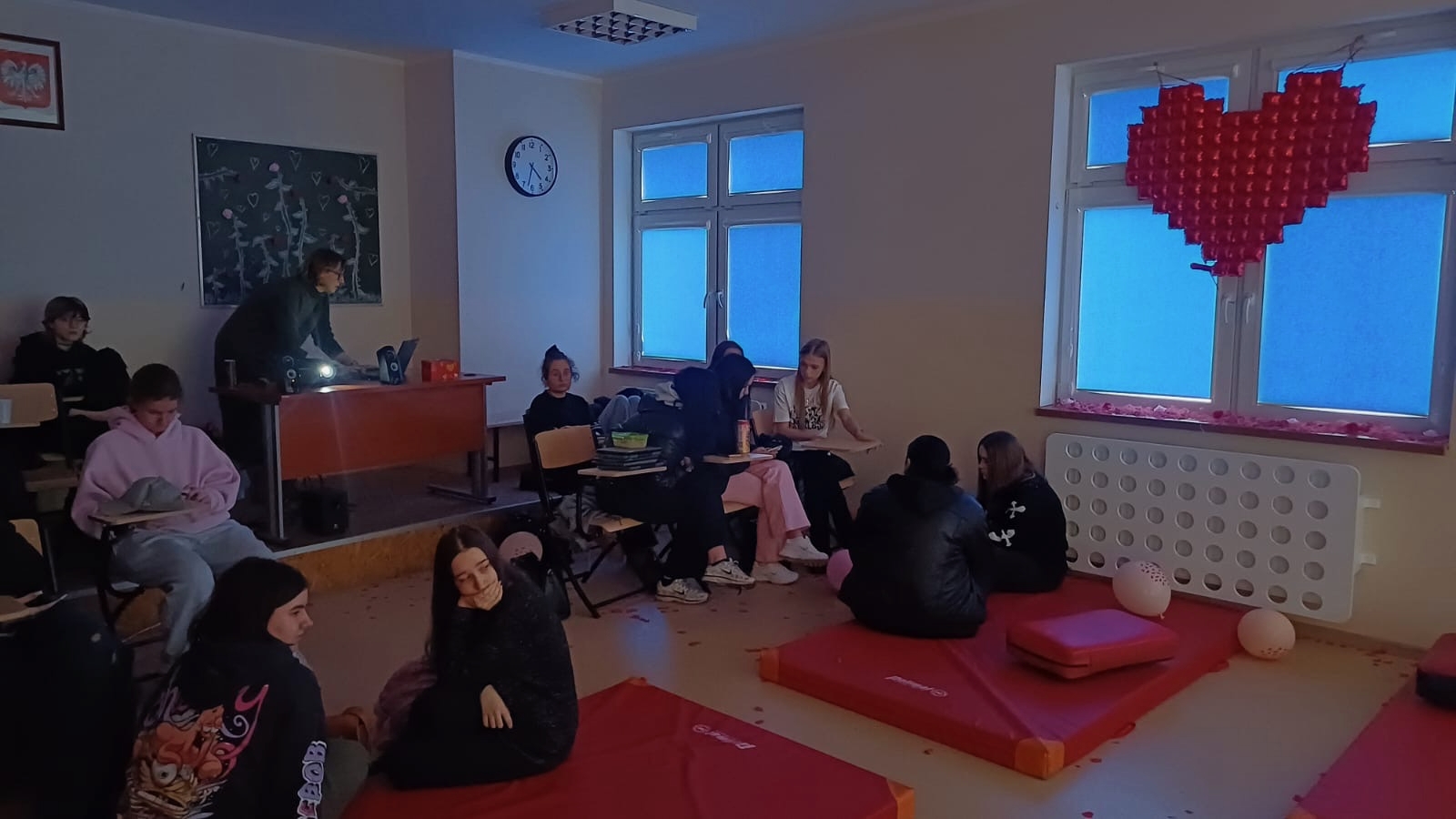 13 lutego nasza szkoła wypełniła się wyjątkową atmosferą sprzyjającą wspólnemu świętowaniu i integracji. Sala na tegoroczne walentynki zachwycała już od progu i wprowadzała w radosny nastrój. Ściany ozdobione zostały serduszkami, przestrzeń wypełniona była balonami. W oknach i na parapetach zaczerwieniło się od serduszek. Przygotowana była ścianka z kolorowym tłem, przy której uczniowie robili sobie zdjęcia. Działała poczta walentynkowa. Tegoroczne walentynki pozostaną w naszej pamięci jako dzień pełen zabawy i pozytywnej energii.